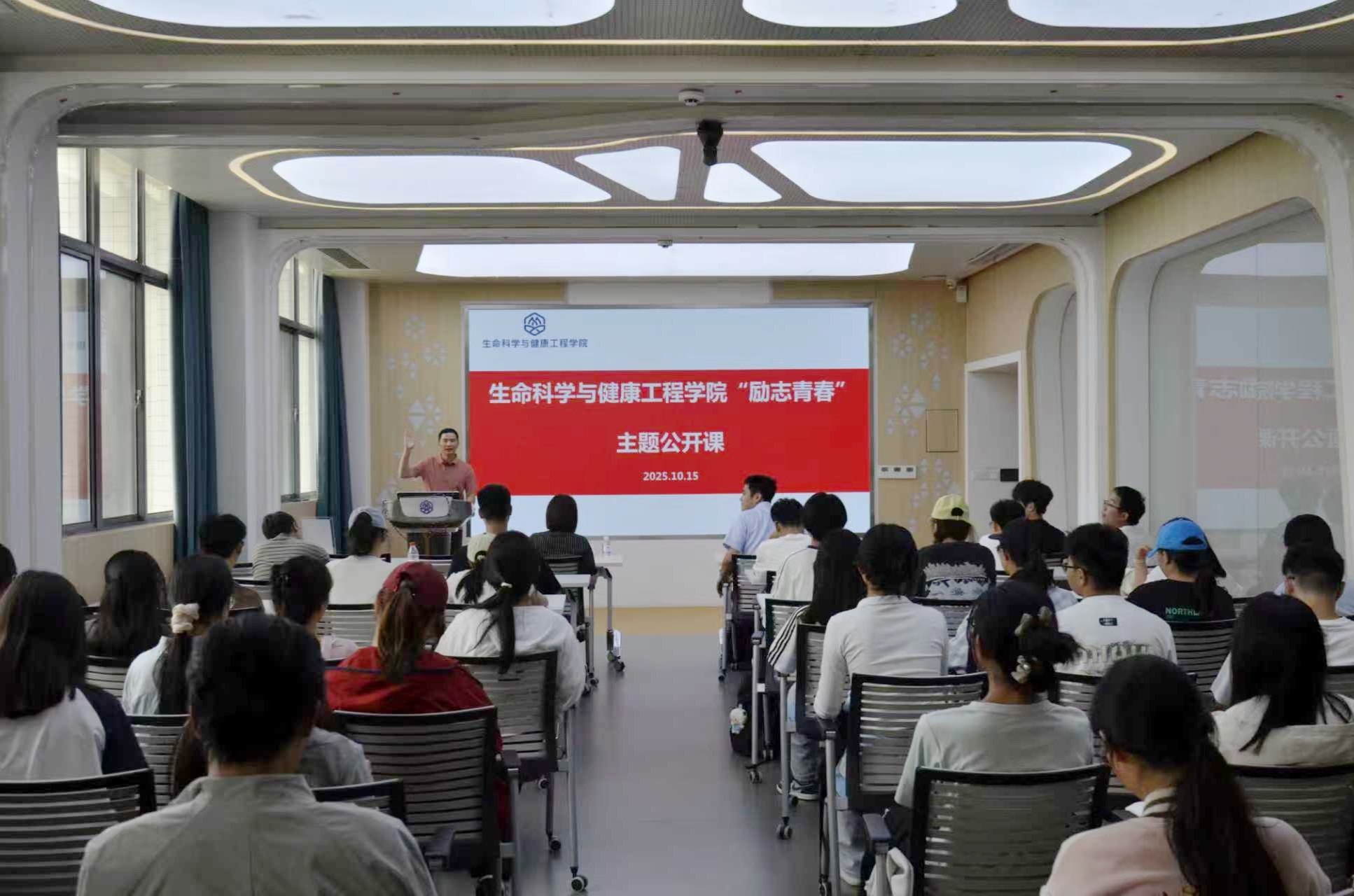 为充分发挥朋辈榜样引领作用,促进大学生综合能力发展,提高创新创业能力。10月15日下午,生命科学与健康工程学院在学院306会议室组织开展了“励志青春”主题公开课,活动邀请无锡清耳话声科技有限公司副总经理朱仁骏进行分享。学院党委副书记兼副院长孙颖、辅导员苗文建及80余名学生参与了此次活动。活动由苗文建主持。