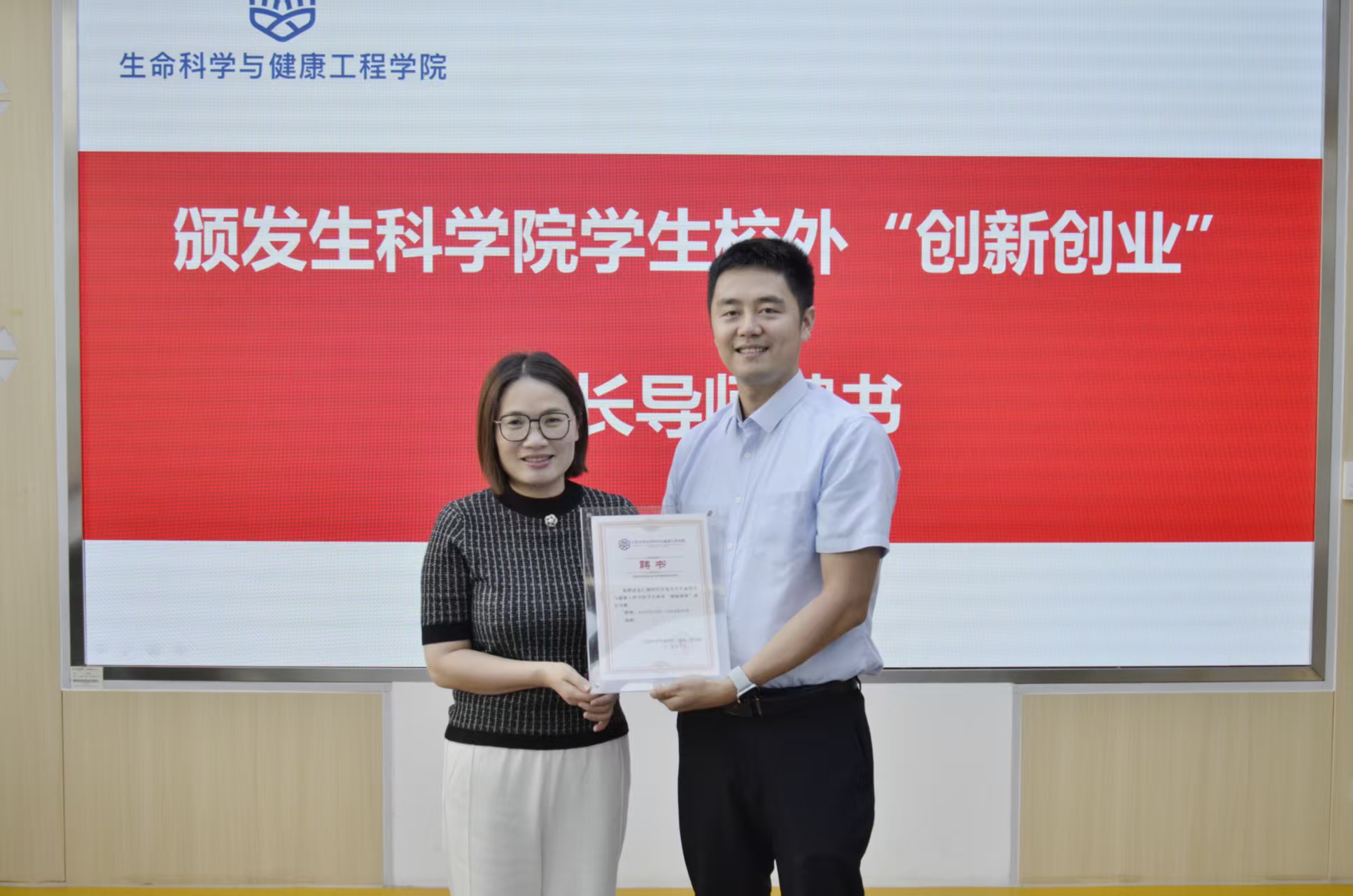 活动伊始,孙颖代表学院为朱仁骏颁发江南大学生命科学与健康工程学院学生校外“创新创业”成长导师聘书。