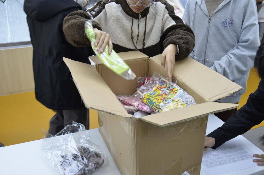 同学们统一领取了活动筹备组精心备置的艾草锤制作材料包。包内艾绒、棉布、绳线、剪刀等制作物料一应俱全。领取材料后有序就座,静候主持人开启活动介绍,为后续制作环节做好充分准备。