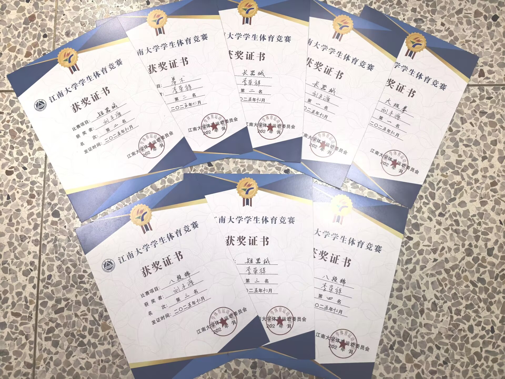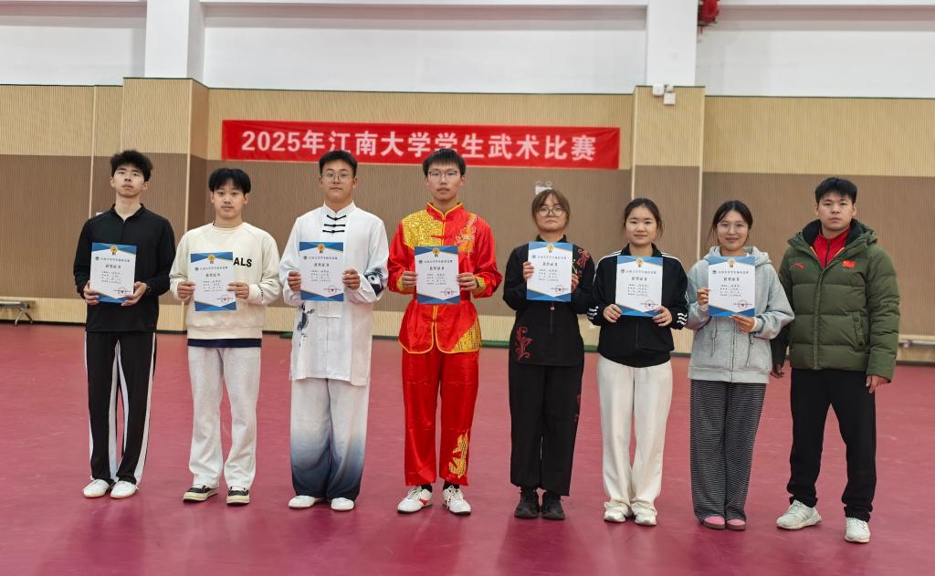 近日,2025年江南大学学生武术、八段锦比赛圆满落幕。生命科学与健康工程学院代表队以刚柔并济的身姿、沉着稳健的发挥,在赛场上绽露锋芒,最终以优异成绩夺得小学院组冠军,展现出生科学子文武兼修、全面发展的精神风貌。