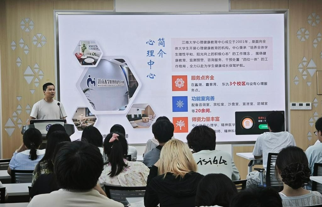 首先,苗文建围绕心理健康教育、团学工作实务及有效沟通技巧等方面展开系统讲解。他详细介绍了江南大学心理健康中心的服务内容、功能室设置及预约方式,并结合实际案例,指导学生骨干如何在日常工作中关注同学心理状态、及时提供关心支持。在团学工作方面,他介绍了本学期的工作重点,强调了规范流程与准确高效的重要性,鼓励大家在开展活动中锻炼沟通与协调能力。