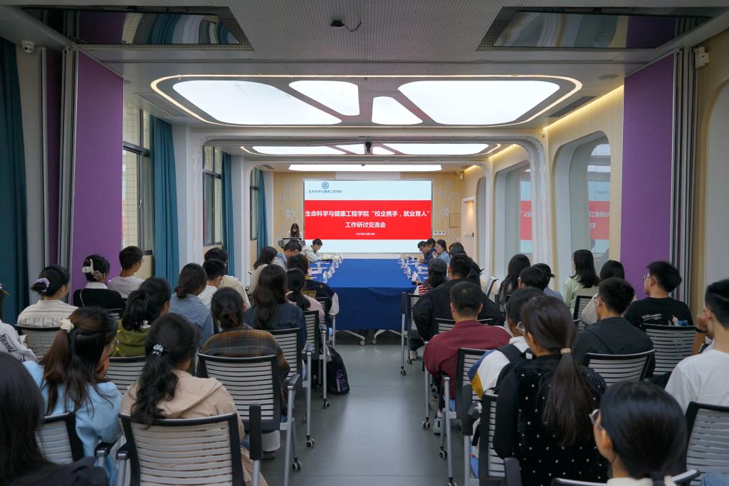 为更精准地对接产业需求与人才供给,实现从“有岗位”到“人岗相适”的跃升,充分发挥大型校园招聘会多维价值,生命科学与健康工程学院于10月19日下午,在学院306会议室举行“校企携手,就业育人”工作研讨交流会。活动邀请正大天晴药业集团股份有限公司、浙江海正药业股份有限公司、山东新华制药股份有限公司、华东医药股份有限公司、山东齐鲁制药齐发药业有限公司、浙江惠松制药有限公司、邯郸制药股份有限公司参会交流,学院党委副书记兼副院长孙颖、副院长李会、辅导员苗文建以及学生代表参加本次活动。活动由辅导员陆冁君主持。