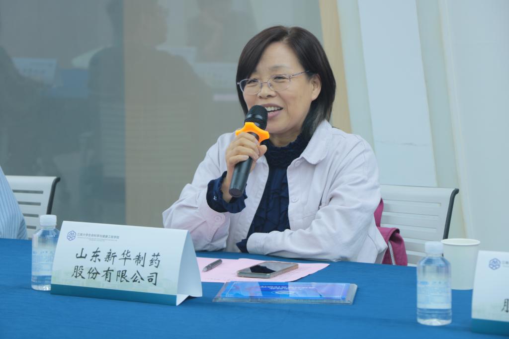 在交流研讨环节,双方围绕“人才培养”“校企合作”“实习就业”三大核心议题展开深入探讨。山东新华制药股份有限公司徐雪梅针对学生专业发展表示:企业非常关注学生专业底色,大家在校企要通过学习实践夯实专业能力,研究生要着重加强科研能力;正大天晴药业集团车晓雯针对面试进行分享:除了专业能力外,大家在校期间要提升综合素质,企业在面试的时候会关注大家的学生干部经历,语言表达能力以及着装仪表等方面;浙江惠松制药有限公司岳春燃针对企业招聘表示:建议大家提升语言能力,开拓国际视野,在求职过程中真诚的表达自己。交流中,李会介绍了学院的人才培养、学生实习实践、科研情况,鼓励在场的同学:要结合专业发展找准自己的定位,加强职业规划,勇担青年学子的使命。