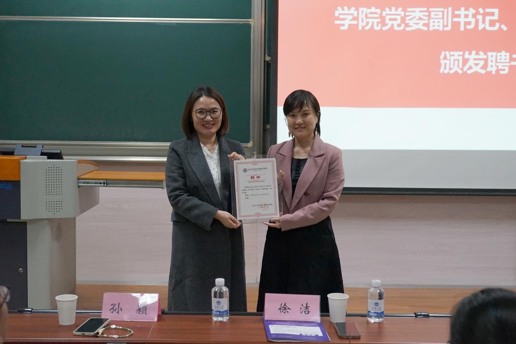 活动伊始,孙颖代表学院为徐洁颁发生命科学与健康工程学院学生校外“创新创业”成长导师聘书。
