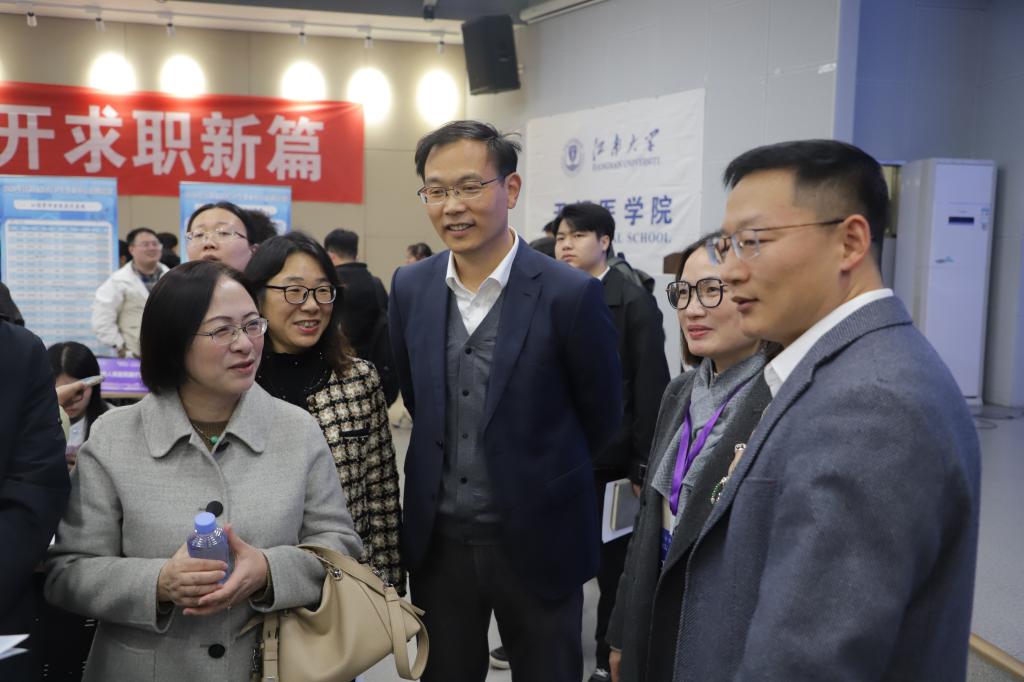 江南大学党委学生工作部部长周伟涛、无锡医学院党委书记向琪、生命科学与健康工程学院党委书记史志洪、无锡医学院党委副书记兼副院长包羽、无锡医学院副院长代卉、生命科学与健康工程学院党委副书记兼副院长孙颖等校院领导亲临现场,与用人单位代表及求职学生亲切交谈,鼓励同学们把握机遇,争取早日实现职业理想。