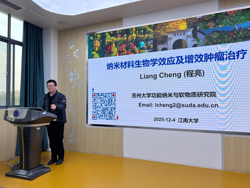 为深化药学专业本科生对科研创新前沿的理解,提升科研综合素养,丰富学术视野,生命科学与健康工程学院于12月4日下午举办了药学系科研创新前沿讲座。此次活动邀请苏州大学特聘教授、纳米科学与技术学院副院长程亮以及云南白药集团中央研究院无锡中心常务副总经理陆晔辉担任主讲,由生命科学与健康工程学院副院长、药学系主任李会主持。