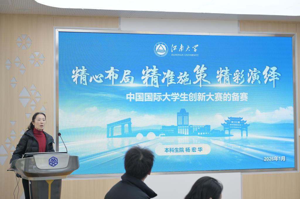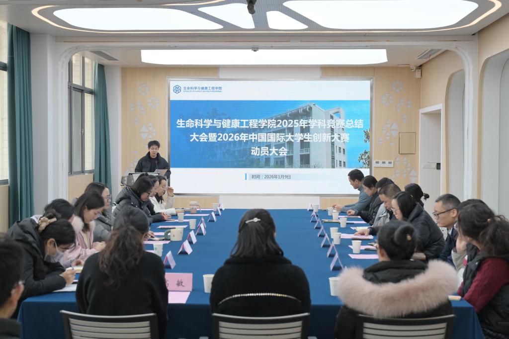 为扎实推进2026年中国国际大学生创新大赛备赛工作,2026年1月9日,生命科学与健康工程学院在306会议室举行2025年学科竞赛总结大会暨2026年中国国际大学生创新大赛动员大会。学院副院长(主持工作)孙嘉、党委副书记兼副院长孙颖、江南大学教务处实践教学中心正科级干部杨宏华、校团委副书记王园园、学院教师及学生代表参会。会议由辅导员张世祺主持。